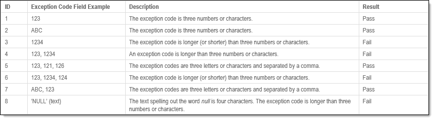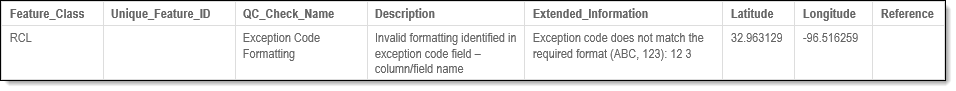 The Exception Code Formatting quality control (QC Quality Control) check identifies entries that contain invalid exception code formats, allowing for the correction of formatting issues to ensure exception codes are applied correctly.