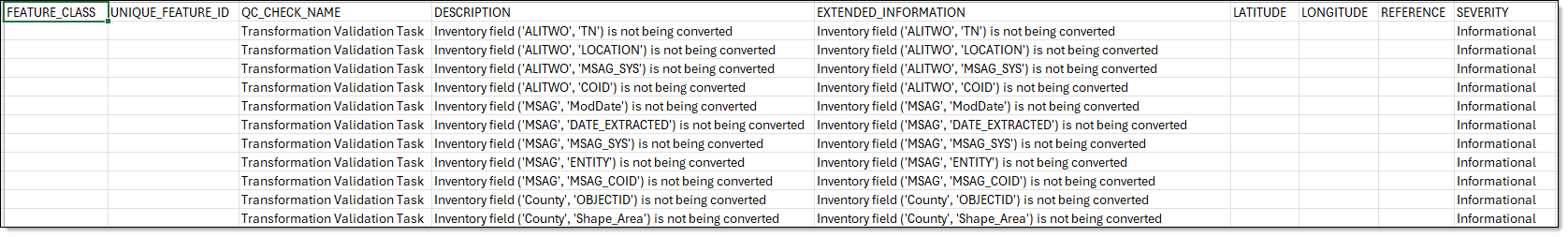 The Globally Unique ID quality control (QC Quality Control) check verifies all identifiers (IDs) within a specified ID field are unique across all configured feature classes or tables. Each duplicated ID reports a fallout allowing you to spatially see the duplicate on the map with the correct feature class name populated in the fallout. The specific feature classes or tables that share that unique ID are listed in the extended information. Fallouts triggered by tables contain no latitude or longitude coordinate information, and therefore, are summarized into one record for that table's non-unique IDs.