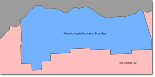 In this example, the area in blue would be reported as a gap because there is no coverage by the Fire Boundary in an area where the Authoritative Boundary exists.