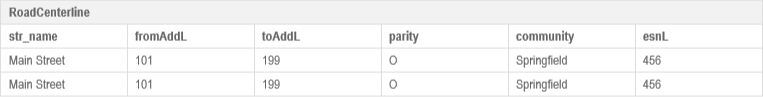 RCL - ESN Left: Represents the Emergency Service Number (ESN) on the left side of the road segment.
