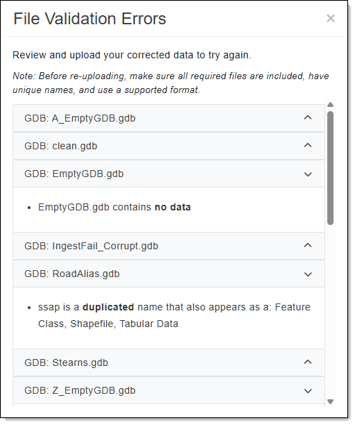 Missing, Unreadable, or Duplicate Files: The dataset that was uploaded has one or more files that are duplicated, missing, or are unreadable. When these files are identified, make sure all required files are included, have unique names, and use a supported format before trying again.