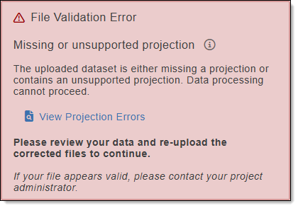 Projections: Identifies where invalid projection files exist in the uploaded dataset.